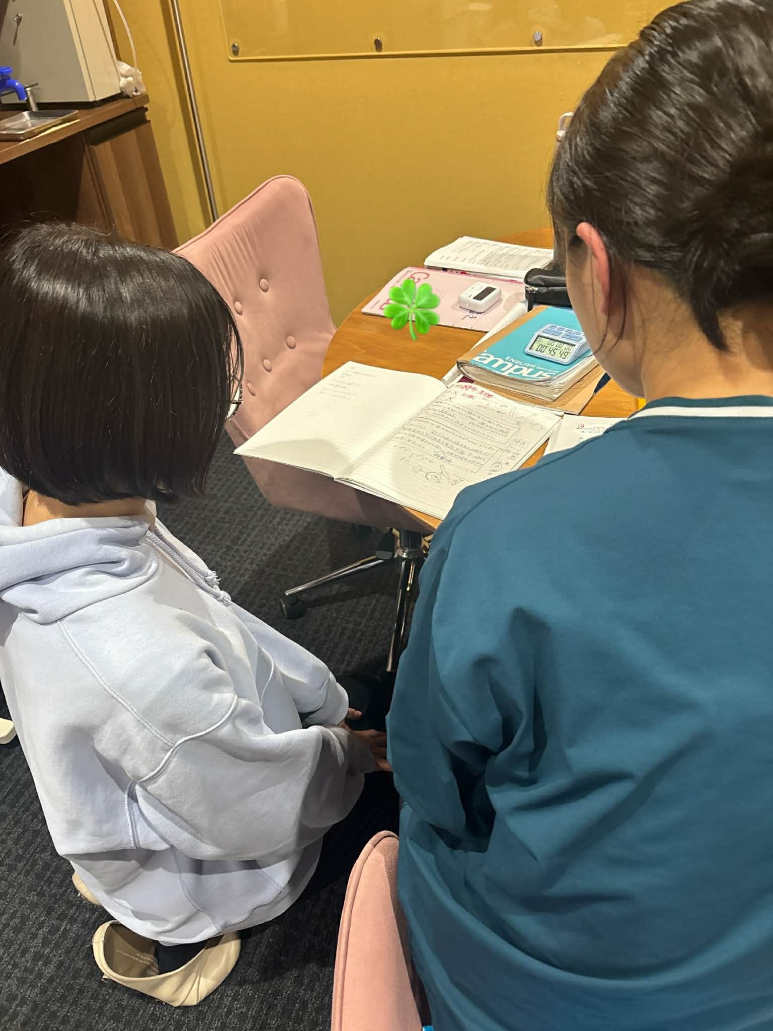 ▲ゆばちゃんが過去問のフィードバックを塾生と一緒にしているようす